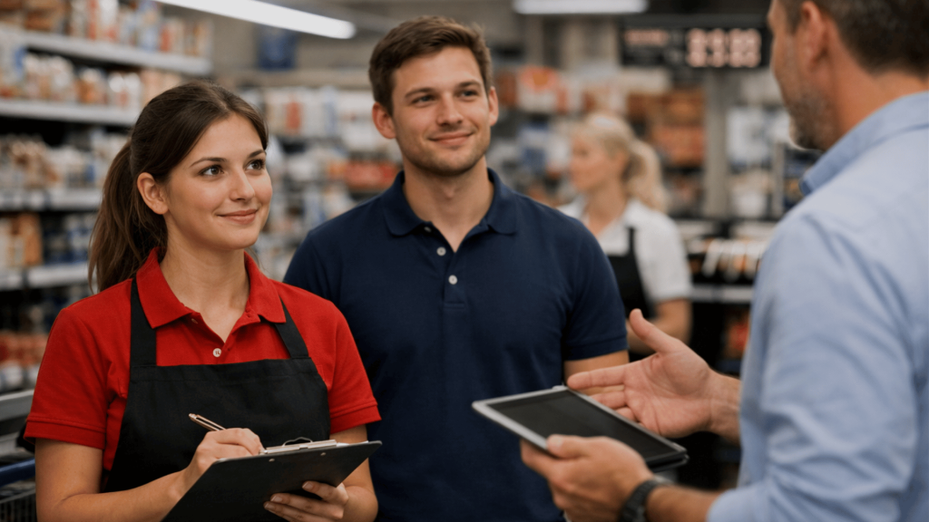 - Addetti supermercato alimentare, magazzino riordino sala, banco servito, cassa.